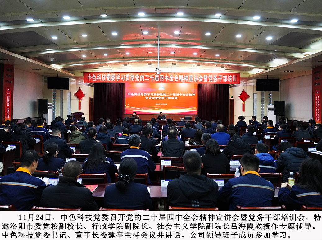 中色科技党委召开党的二十届四中全会精神宣讲会暨党务干部培训会
